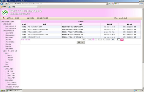 | 本系統(tǒng)軟件是育齡婦女技術(shù)服務(wù)的縣級在線管理軟件,對育齡婦女管理系統(tǒng)的補充和延伸。也是全國唯一的計生科技服務(wù)管理軟件。 縣級計生委只要有SQL2005以上的服務(wù)器即可運行,可實現(xiàn)每天的兩次備份,避免數(shù)據(jù)的丟失。所有操作用戶只要在能上互聯(lián)網(wǎng)、操作系統(tǒng)為WINDOWS 2000/xp/2003的電腦中即可,無需安裝軟件,簡單方便。 | ||||||||||||||||||||||||||||||